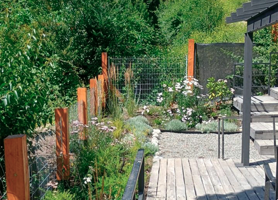 Se diseñó un paisaje coherente con el entorno de bosque, evitando soluciones artificiales y reduciendo la necesidad de intervención constante.